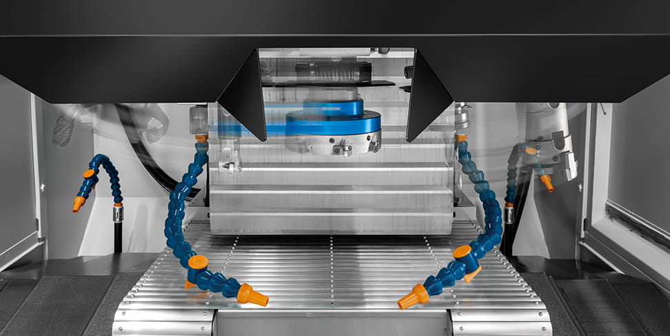 Mit großem Spannbereich und hoher Zuverlässigkeit ermöglicht der QT-Tisch unterbrechungsfreies Bearbeiten und erreicht damit eine sehr hohe Produktivität.