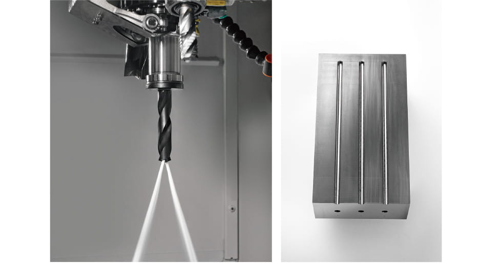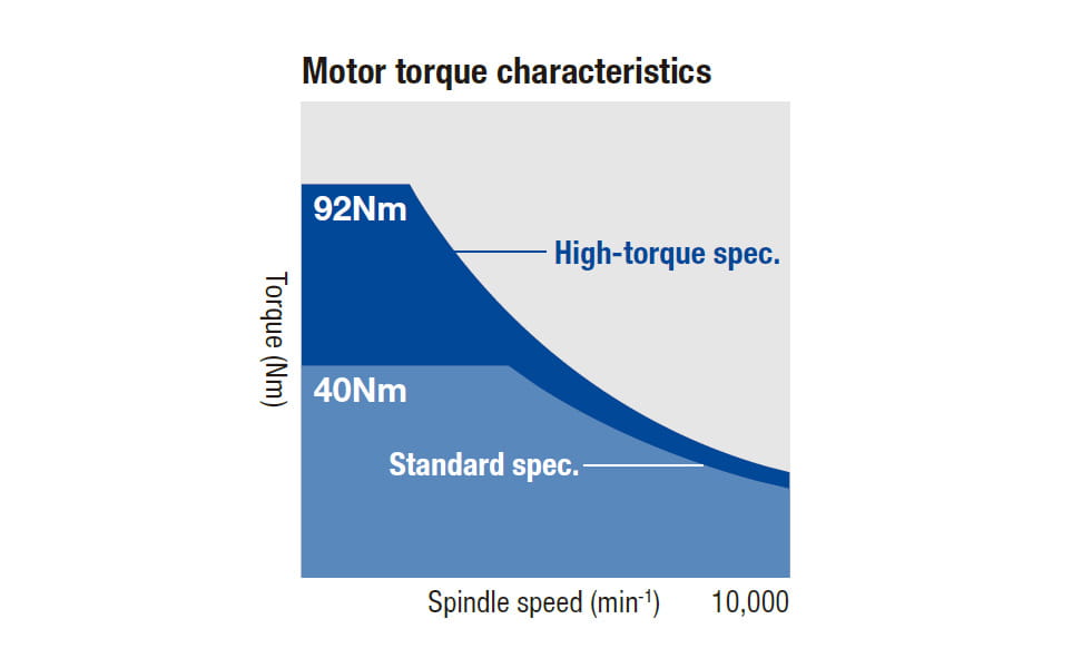 Die hohe Steifigkeit, basierend auf einer speziellen Konstruktion und dem Einsatz eines Hochdrehmoment-Spindelmotors, gewährleistet eine stabile Bearbeitung bei gleichzeitig hervorragender Bearbeitungsleistung.