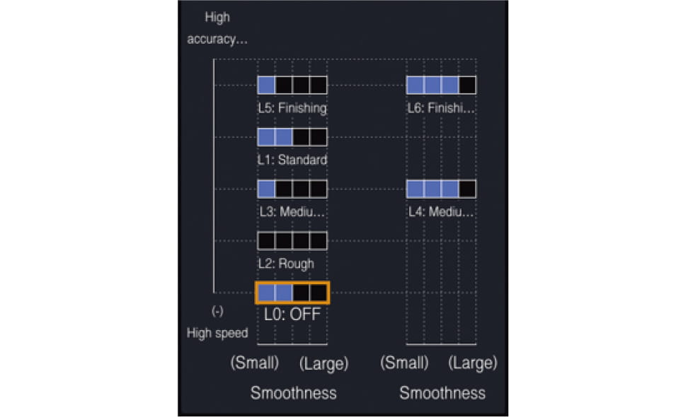 Die Parameter für Bearbeitungsgenauigkeit und Oberflächenqualität können durch einfache Bedienung angepasst werden. So lässt sich eine hochwertige Bearbeitung mit geringem Aufwand erreichen.