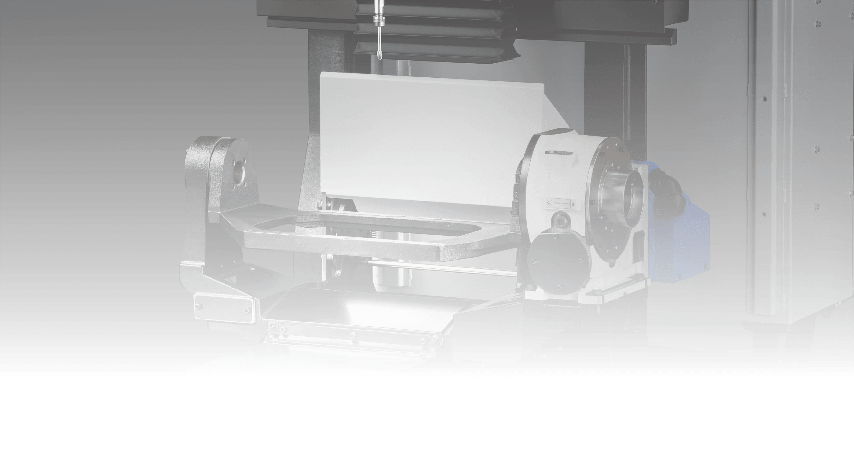 Controlled by four axes, including the tilt axis (A axis) of the roller gear cam structure. Ample jig area is secured, enabling highly flexible jig design. An A-axis table (optional) is available to configure the trunnion jig between the faceplate of the tilt axis and the support.